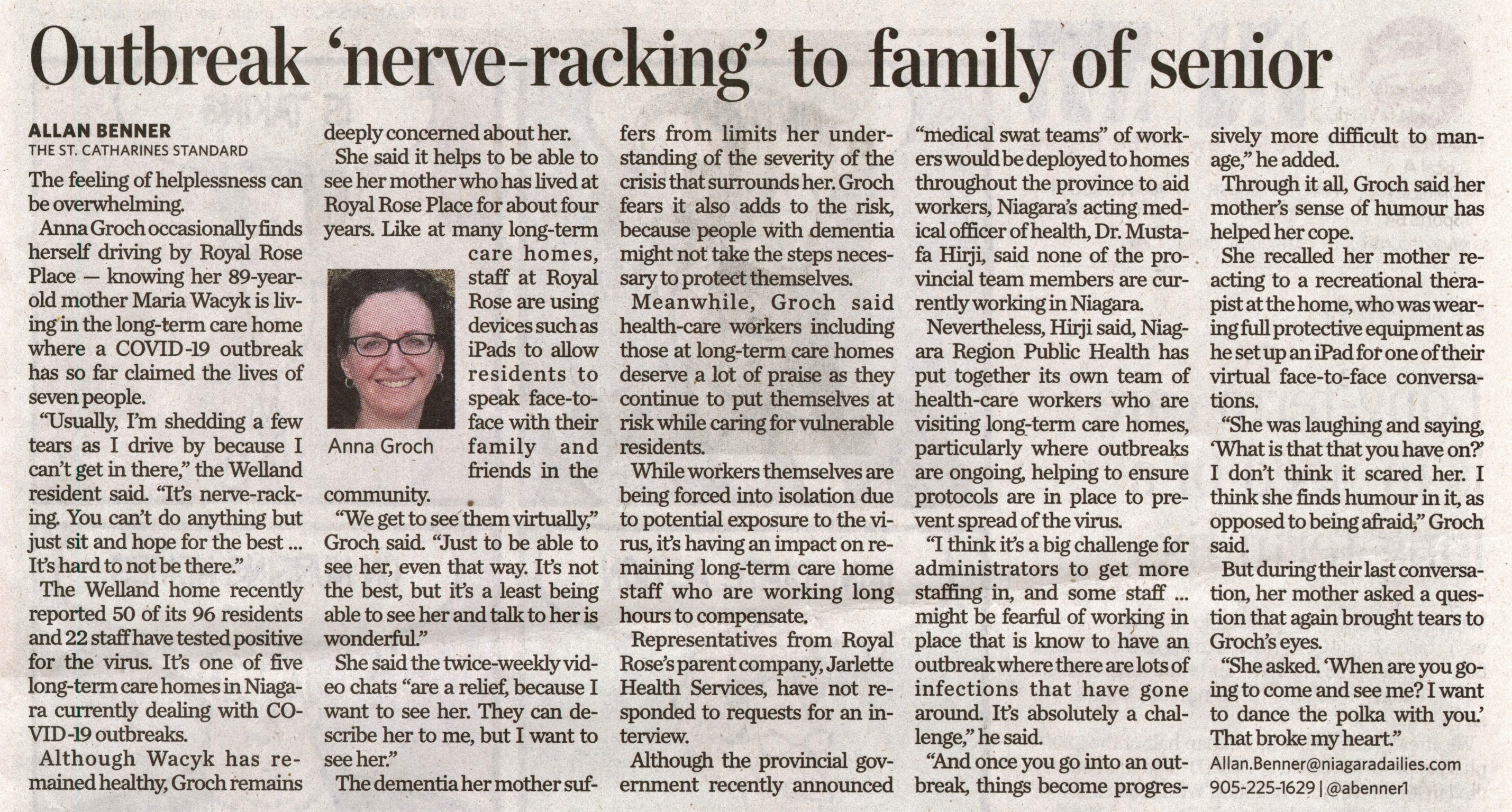 - Wacyk, Maria / Groch, Anna / Royal Rose Place / COVID-19 outbreak / Hirji, Mustafa Dr. / Niagara Region Public Health
