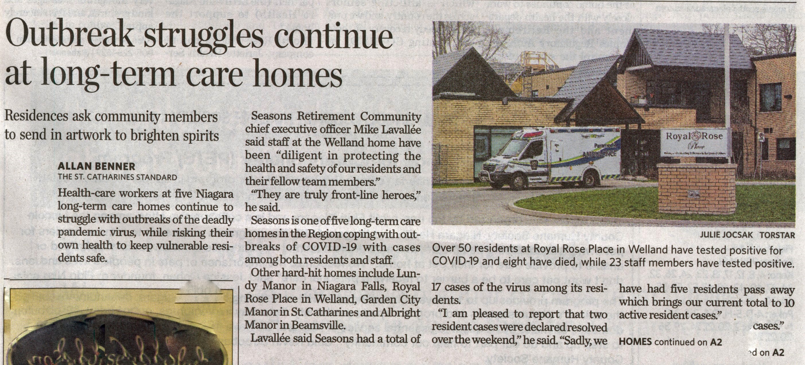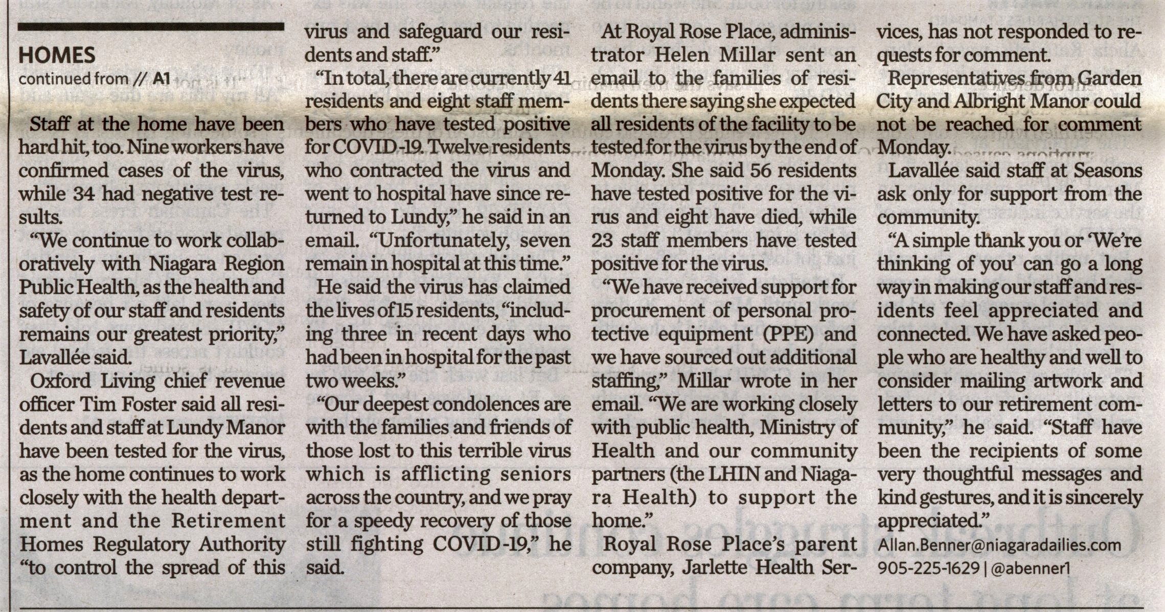 - Lundy Manor / COVID-19 outbreak / Niagara Region Public Health / Foster, Tim