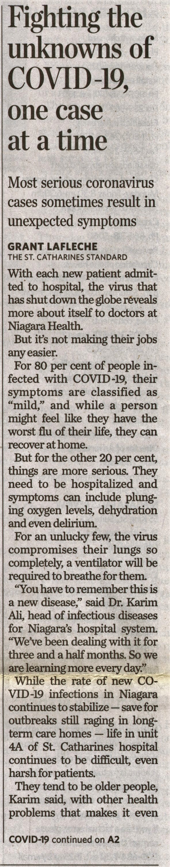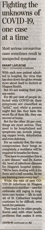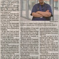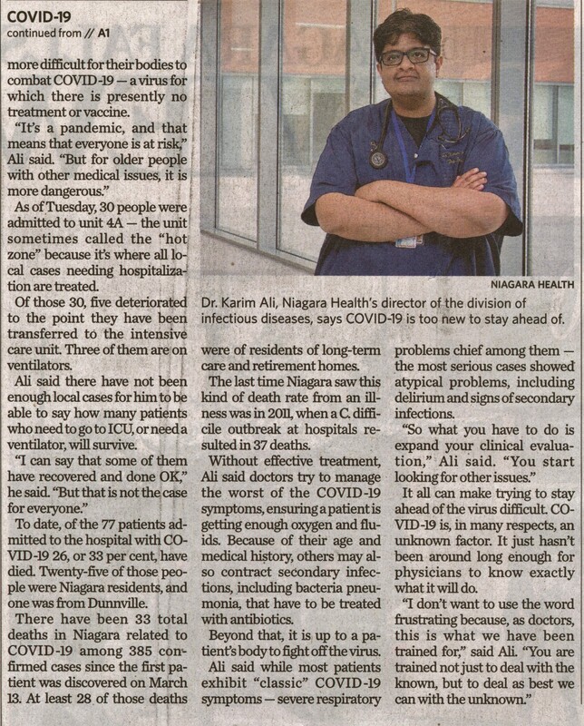 - COVID-19 pandemic / Ali, Karim Dr. / infectious diseases / senior citizens / Niagara Health Care System