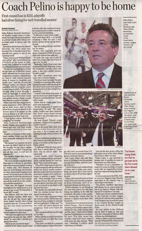 - Pelino, Mike / Brock University / hockey coach / COVID-19 virus