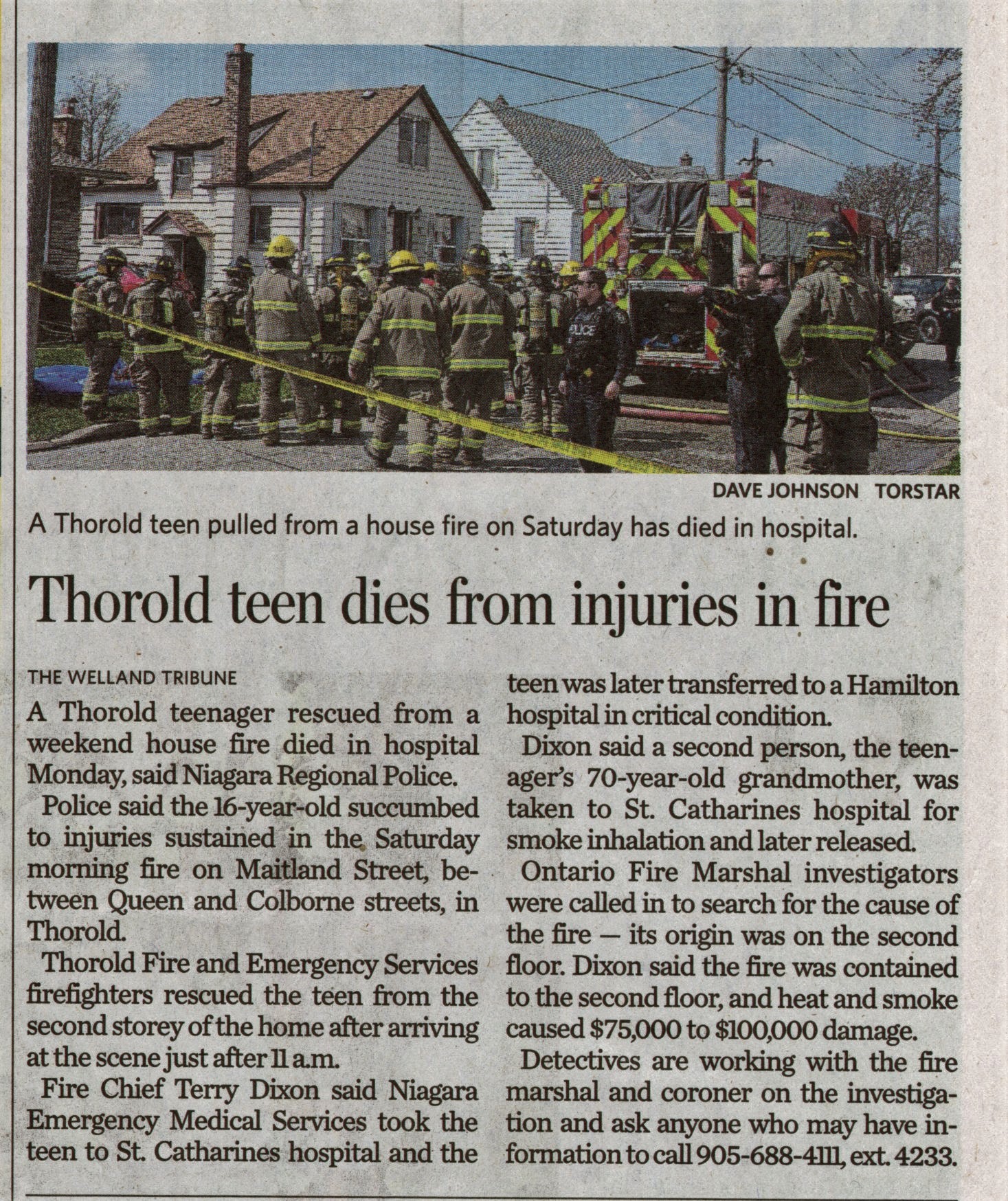 - Thorold teen dies from injuries in fire