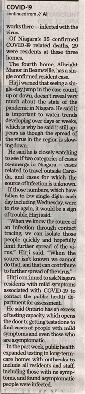 - Hirji, Mustafa Dr. / COVID-19 pandemic / Lundy Manor / outbreak