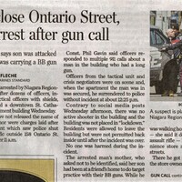 - Police close Ontario Street, make arrest after gun call : Mother of suspect says son was attacked earlier in the day, was carrying a BB gun