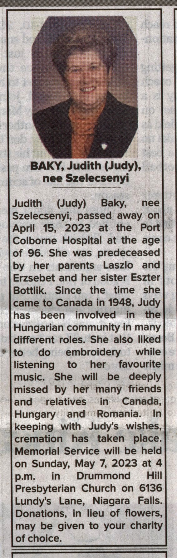 Baky, Judith (Judy) (nee Szelecsenyi)