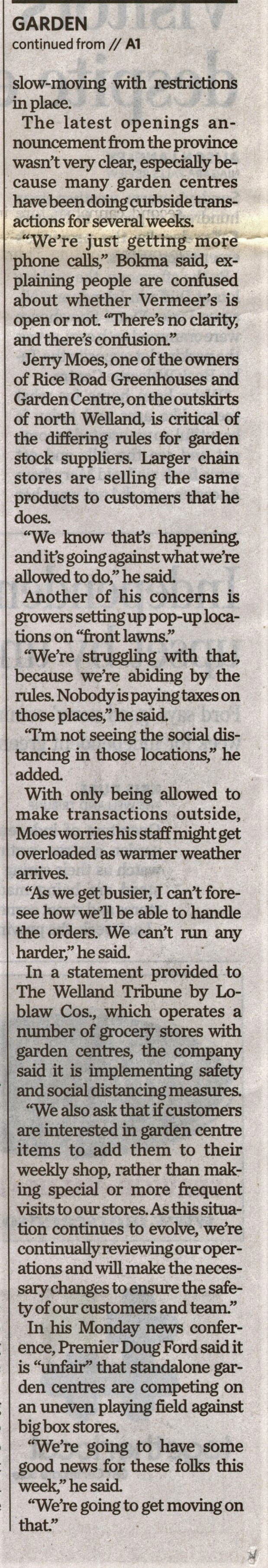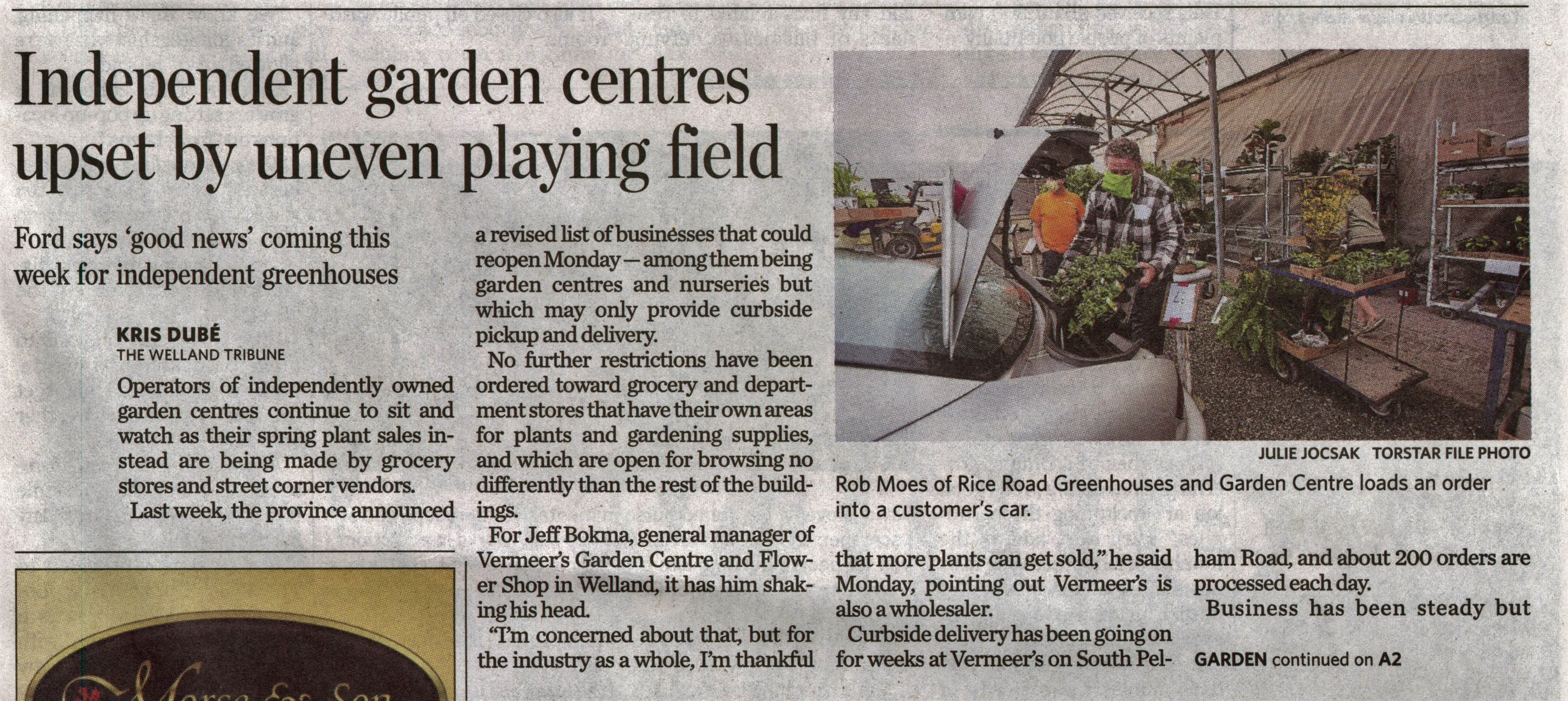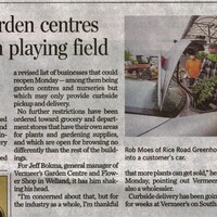 - Garden centres / curbside pickup / delivery / Moes, Rob / Rice Road Greenhouses / Bokma, Jeff / Vermeer's Garden Centre / Ford, Doug