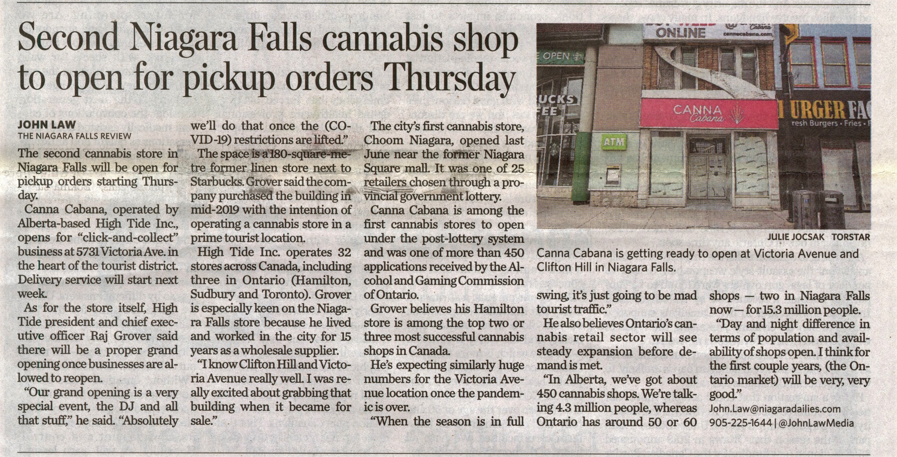 - Canna Cabana / Grover, Raj / High Tide Inc. / COVID-19 restrictions / "click and collect" / cannabis shop