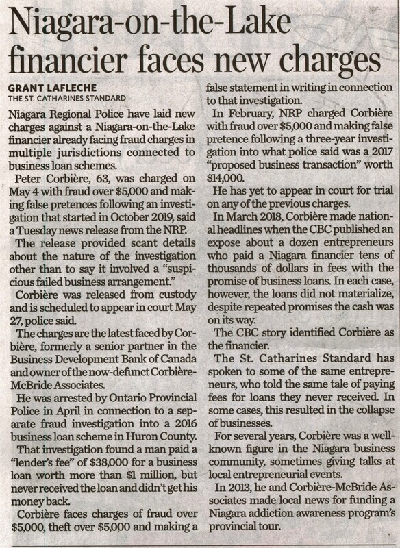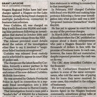 - Corbiere, Peter / Niagara Addiction Awareness program / Niagara Regional Police / fraud charges