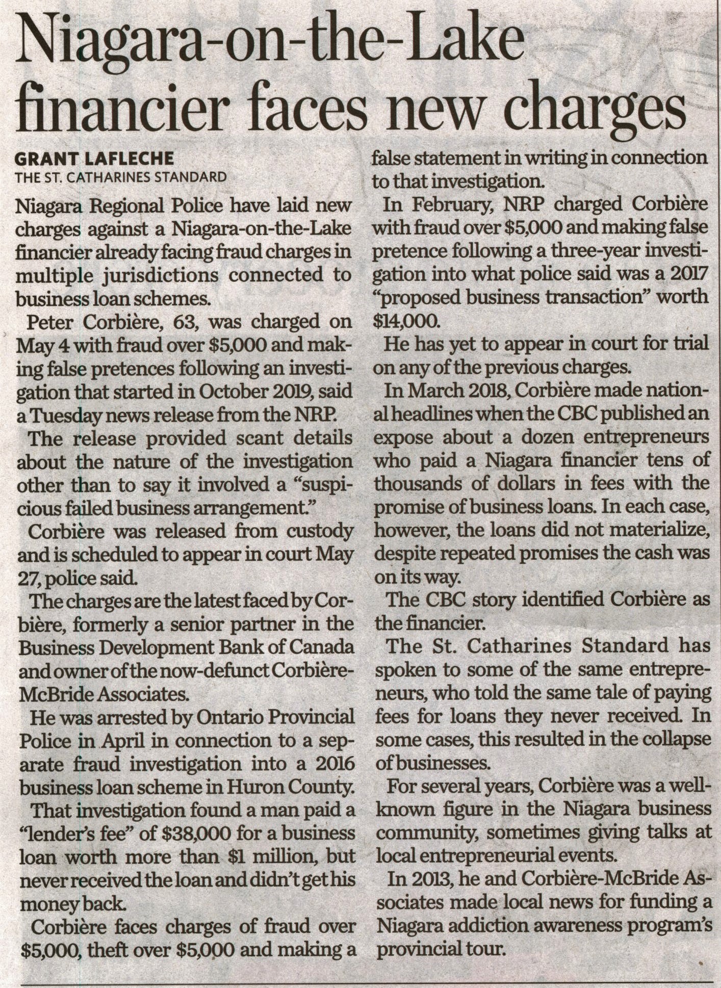 - Niagara-on-the-Lake financier faces new charges