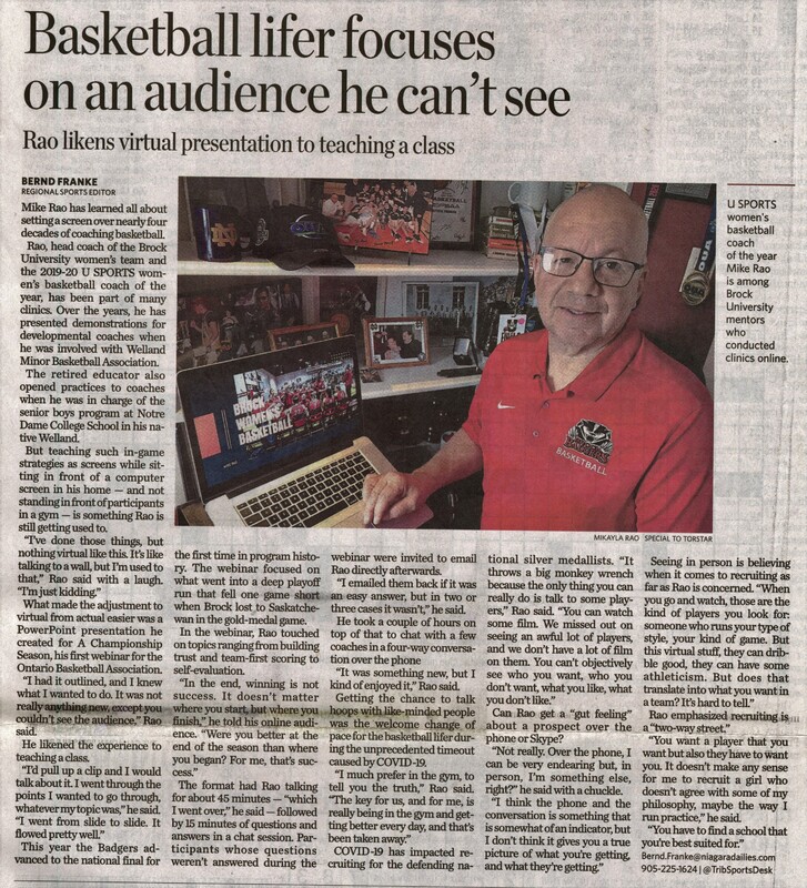 - Rao, Mike / Brock University / basketball coach / COVID-19 pandemic / Ontario Basketball Association / on-line learning / webinar