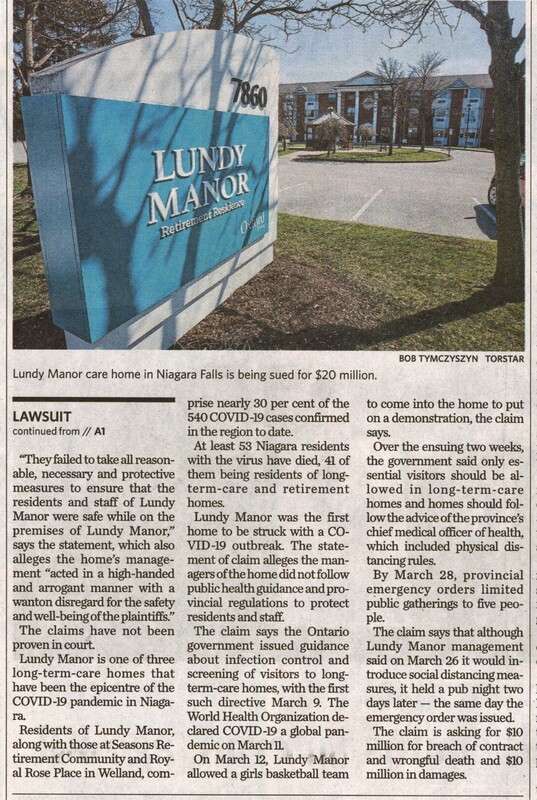 - Families sue Lundy Manor over virus deaths : Lawsuit alleges home failed to properly train staff, protect residents
