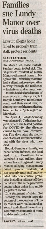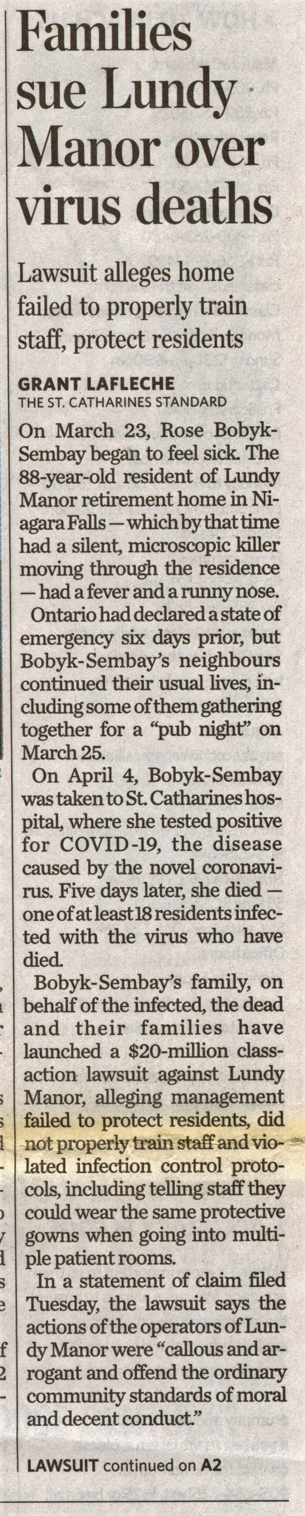 - Bobyk-Sembay, Rose / Lundy Manor resident / COVID-19 pandemic / lawsuit
