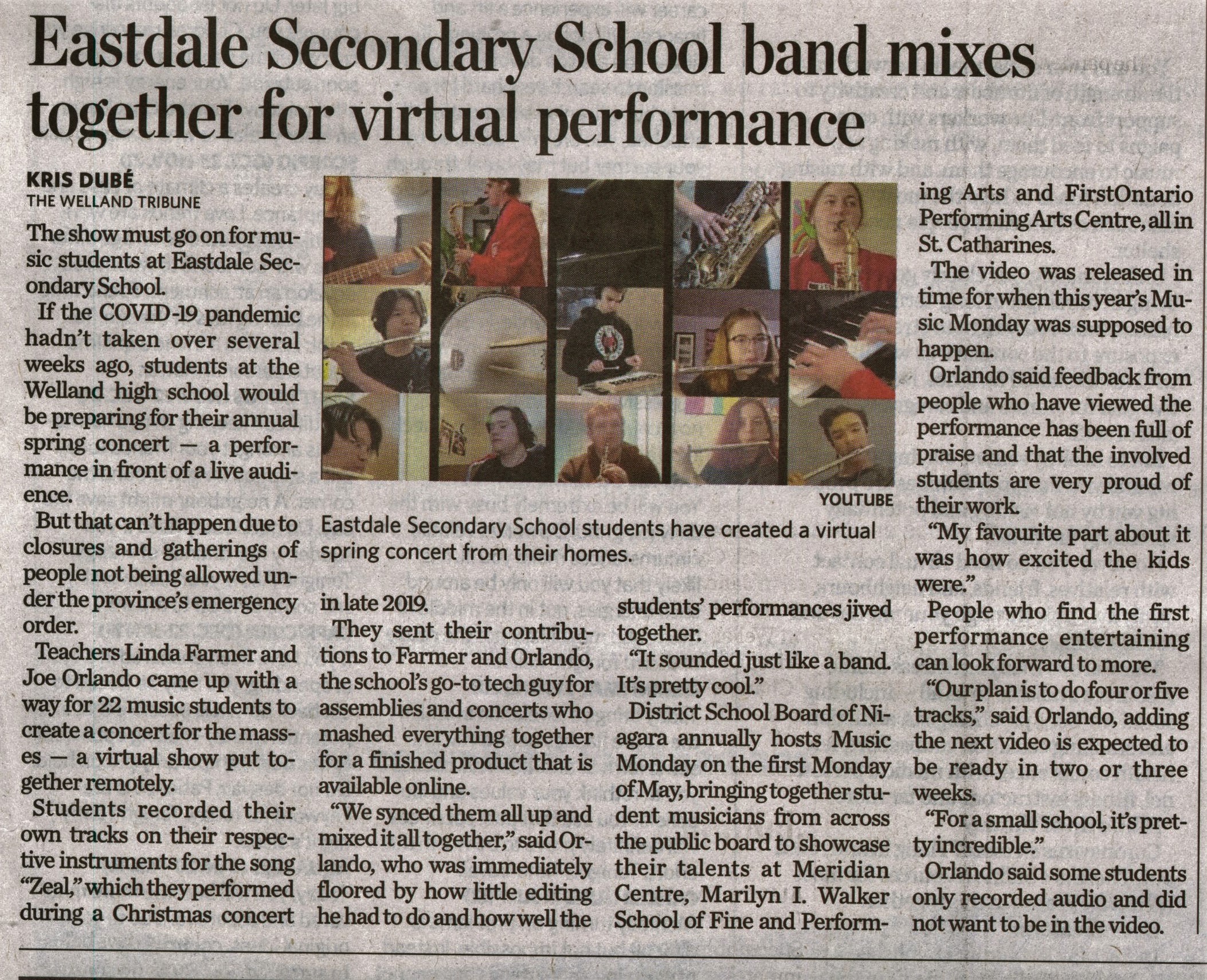 - COVID-19 pandemic / virtual spring concert / District School Board of Niagara / Music Monday / Farmer, Linda / Orlando, Joe