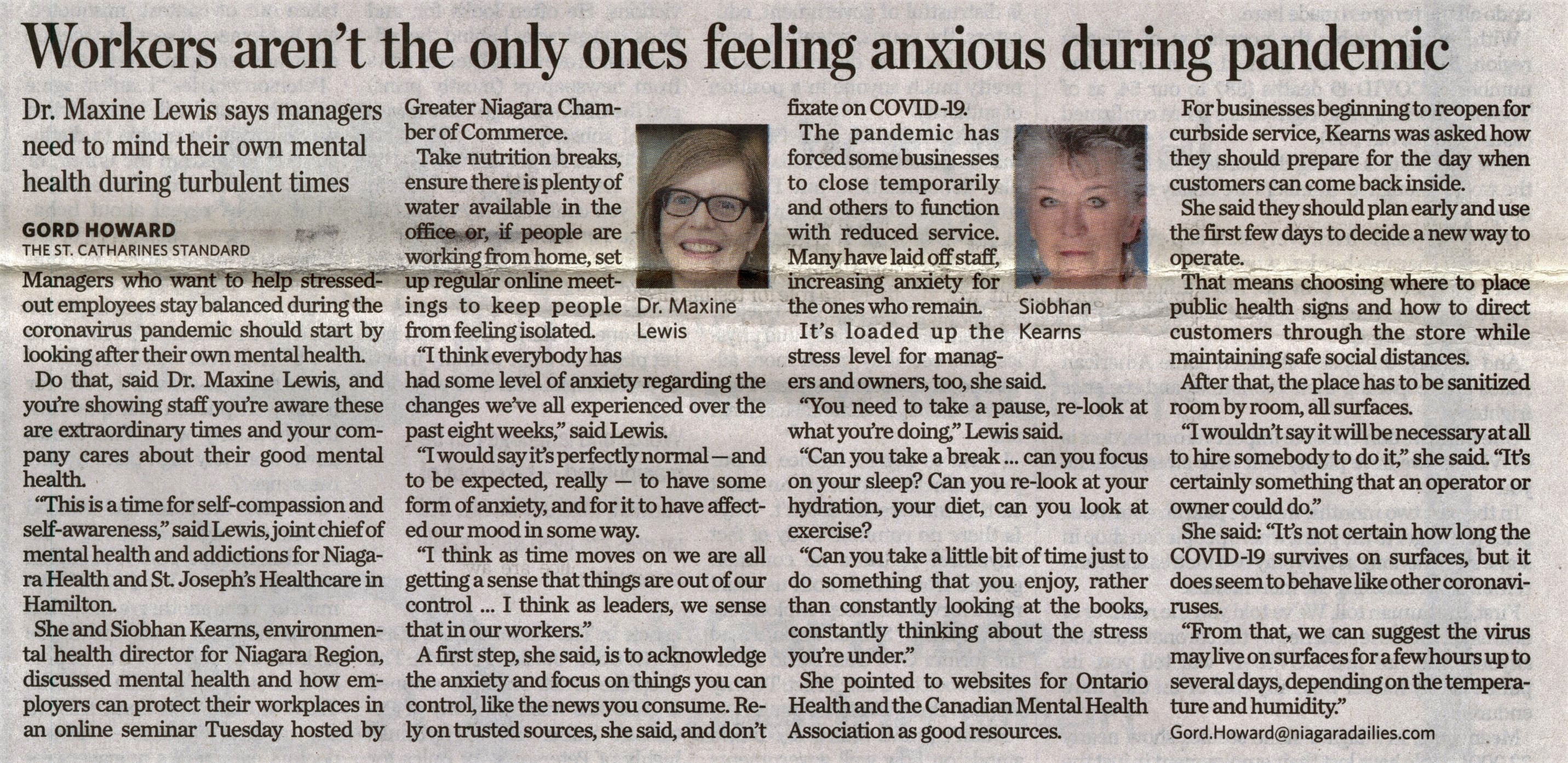 - Lewis, Maxine / Kearns, Siobhan / Niagara Health / COVID-19 pandemic / Niagara Region / mental health