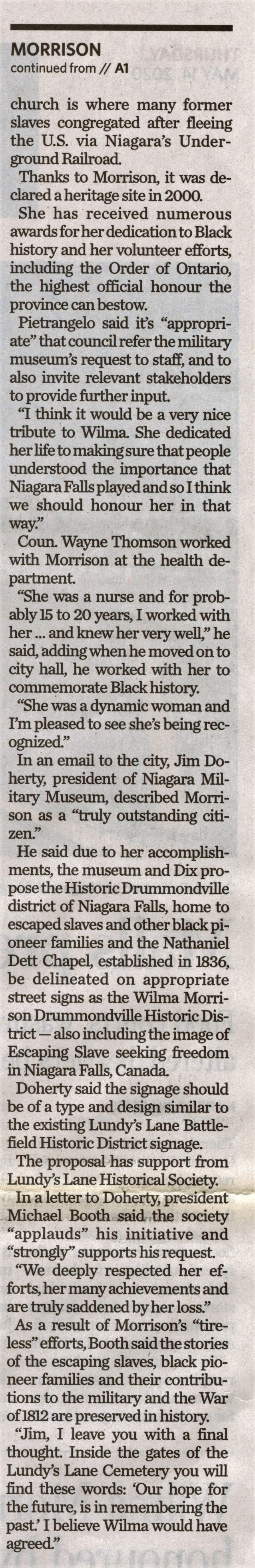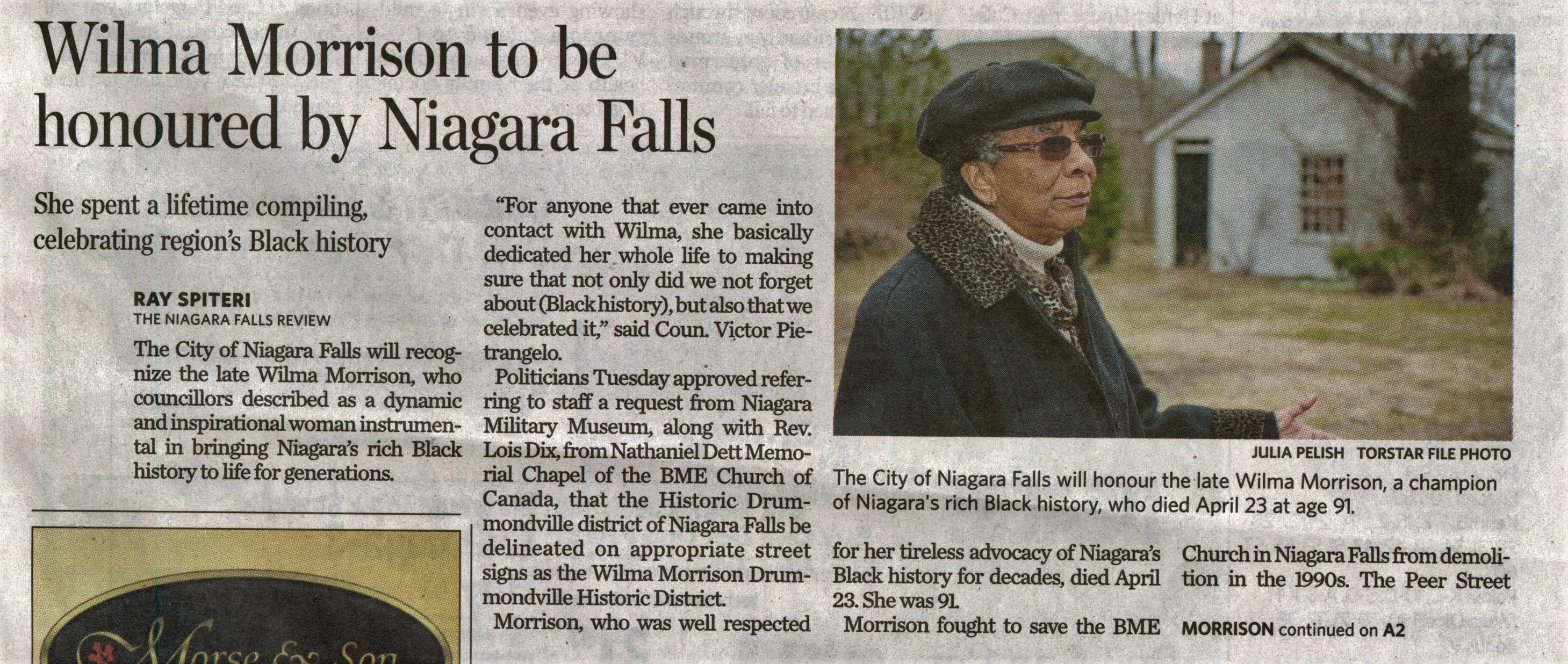 - Wilma Morrison to be honoured by Niagara Falls : She spent a lifetime compiling, celebrating region's black history