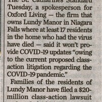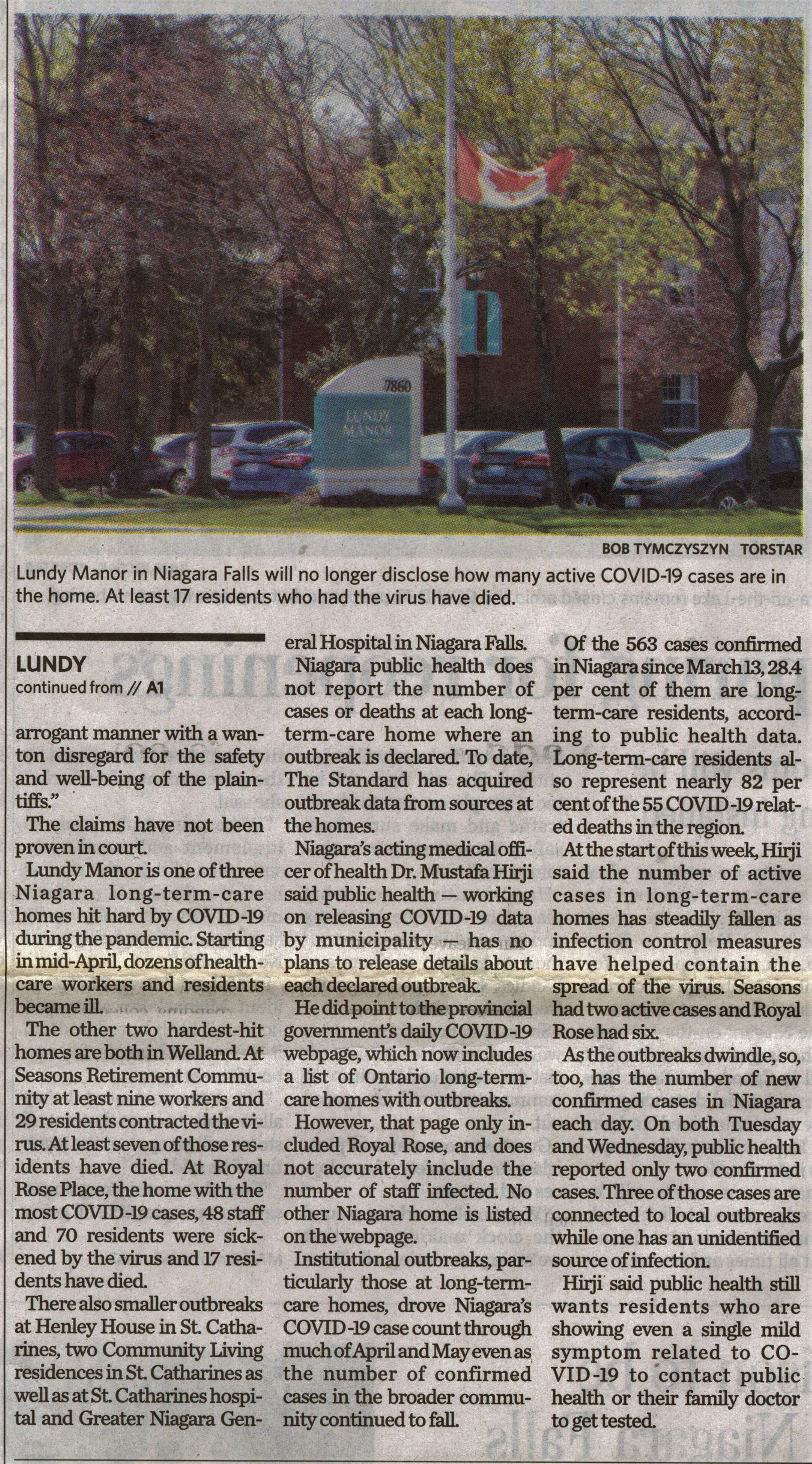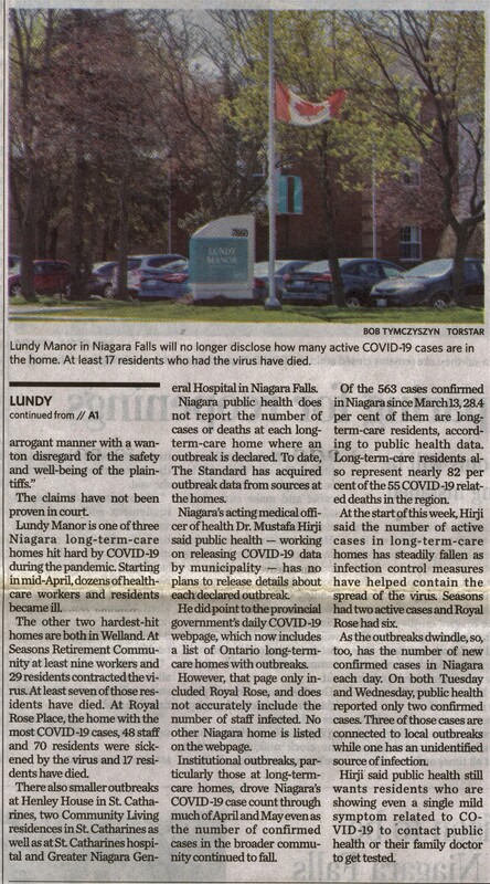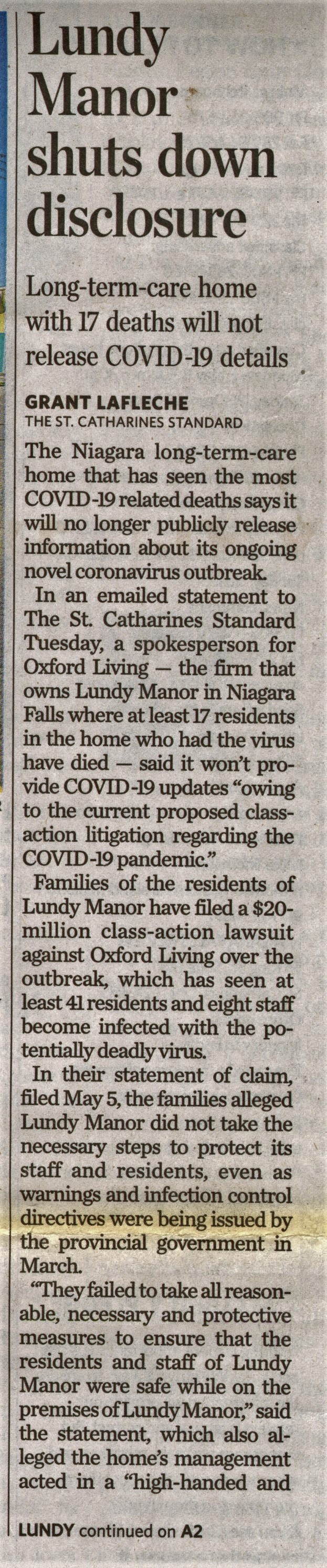 - Lundy Manor shuts down disclosure : Long-term-care home with 17 deaths will not release COVID-19 details