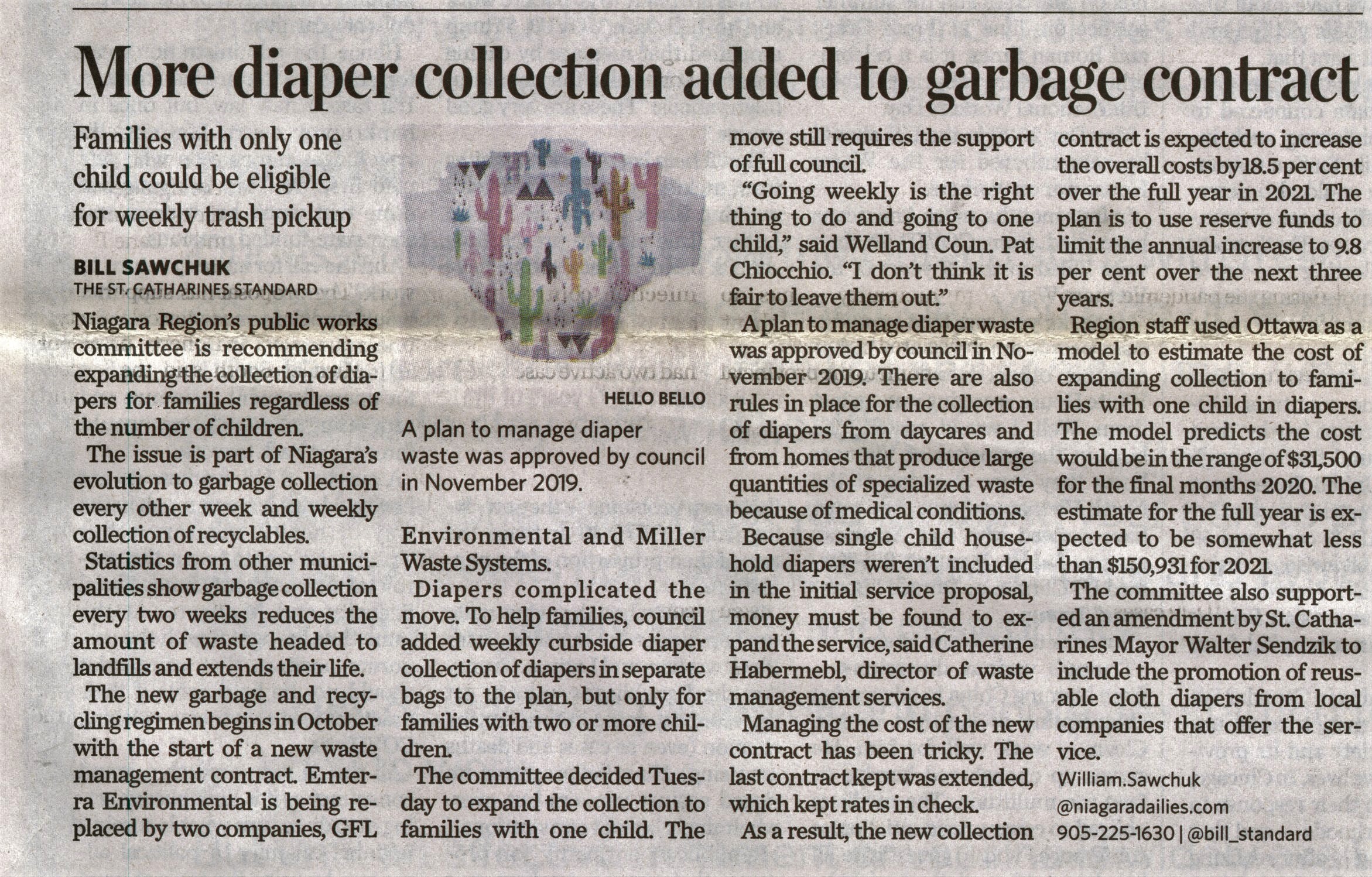 Niagara Region / garbage collection / diaper pickup / GFL Environmental / Miller Waste Systems /