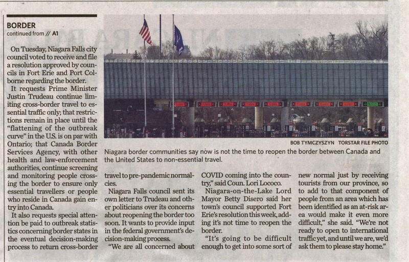- COVID-19 pandemic / Canada-U.S. border / Niagara Falls City Council