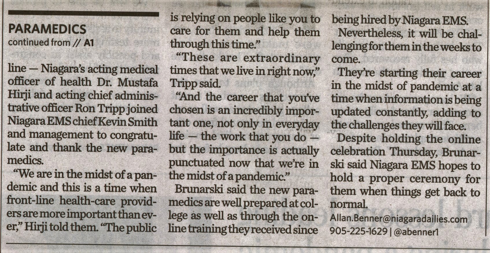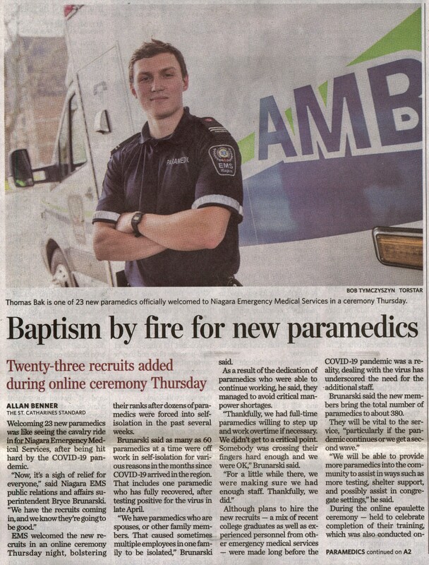 - Baptism by fire for new paramedics : Twenty-three recruits added during online ceremony Thursday