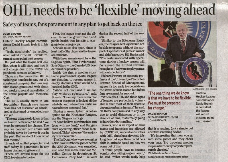 - Niagara IceDogs / Ontario Hockey League / Burke, Billie / COVID-19 pandemic