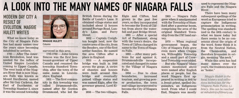 A look into the many names of Niagara Falls : Modern day city a result of evolution