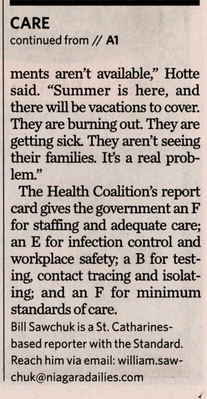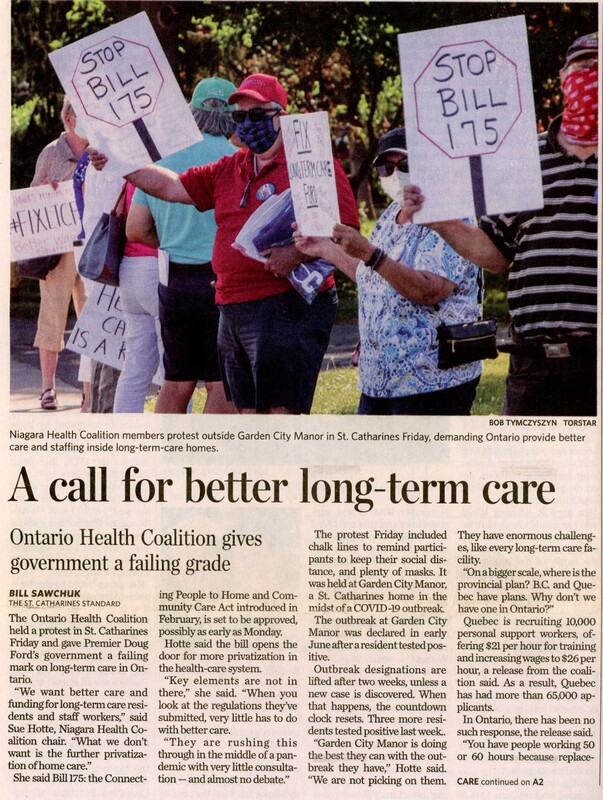 - A call for better long-term care : Ontario Health Coalition gives government a failing grade
