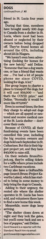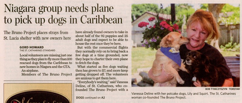 - Niagara group needs plane to pick up dogs in Caribbean : The Bruno Project places strays from st. Lucia shelter with new owners here