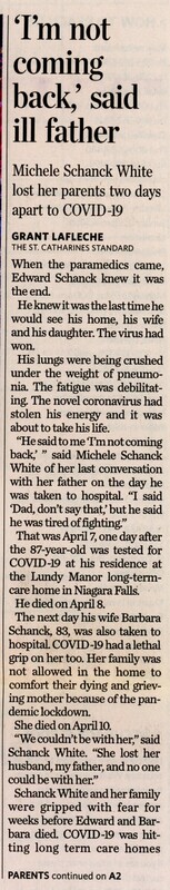 - I'm not coming back, said ill father : Michele Schanck White lost her parents two days apart to COVID-19
