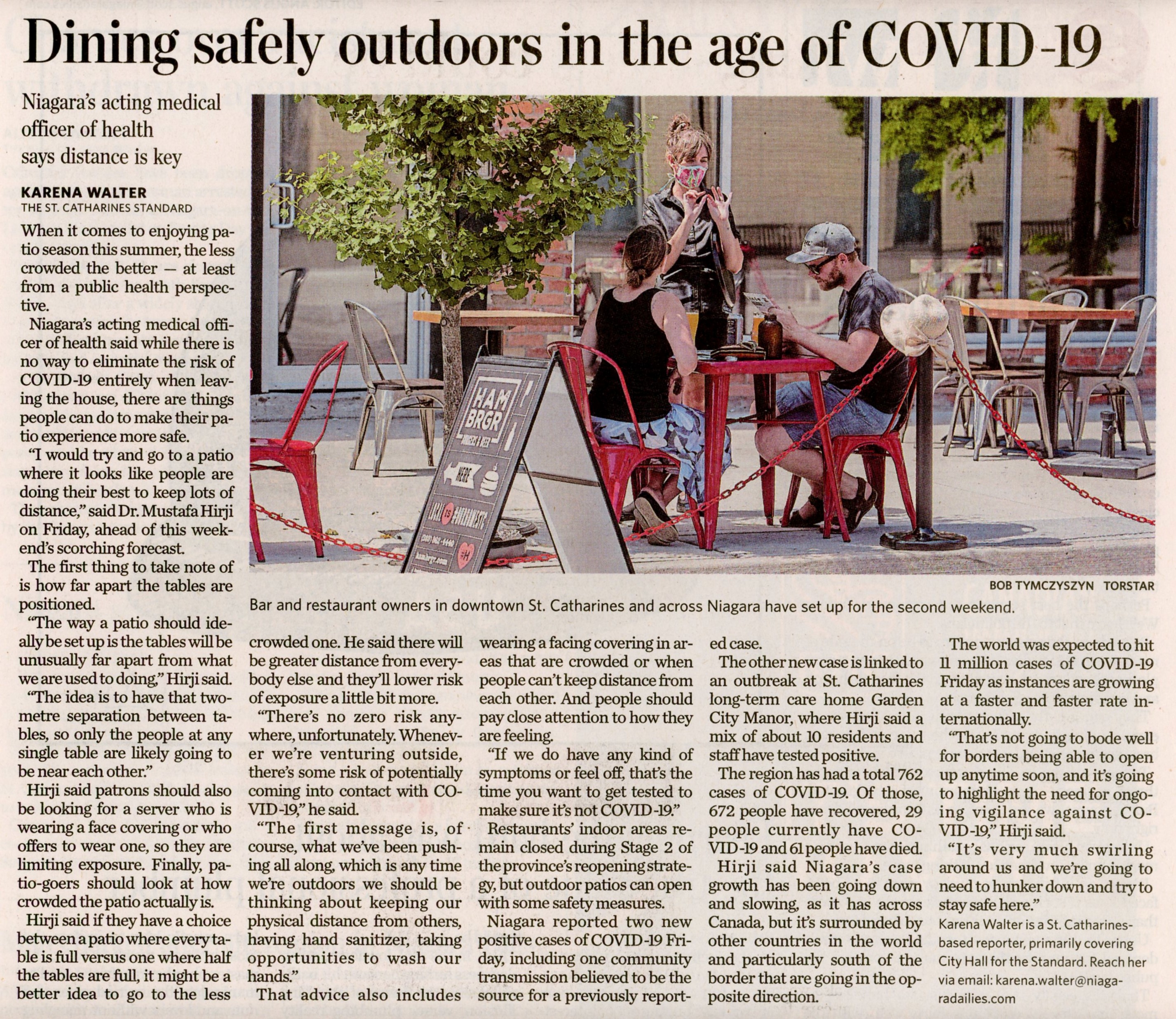 - Dining safely outdoors in the age of COVID-19 : Niagara's acting medical officer of health says distance is key