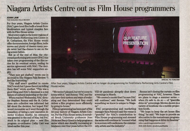 - Niagara Artists Centre / Remus, Stephen / COVID-19 pandemic / attendance decline