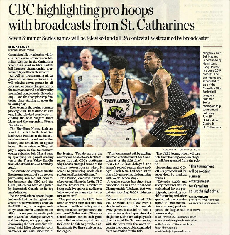 - CBC highlighting pro hoops with broadcasts from St. Catharines : seven summer series games will be televised and all 26 contests livestreamed by broadcaster