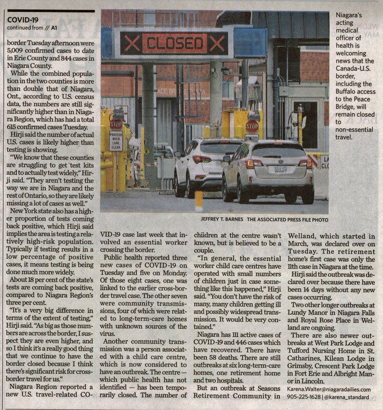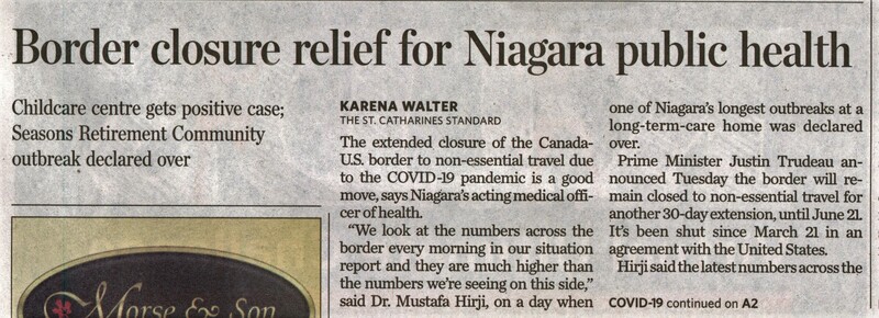 - COVID-19 pandemic / Canada U.S Border / Hirji, Mustafa Dr. / Niagara Public Health