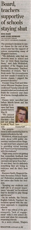 - Niagara's Ontario Secondary School Federation / Nicklefork, Jada / Smith, Shannon / COVID-19 pandemic