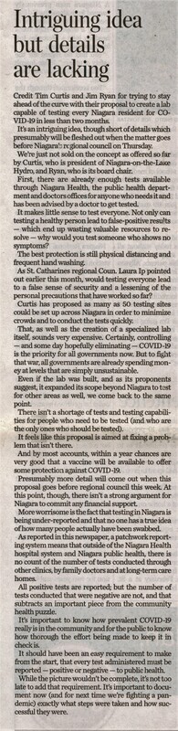 - Curtis, Tim / Ryan, Jim / COVID-19 testing lab / Niagara Regional Council / Niagara Health
