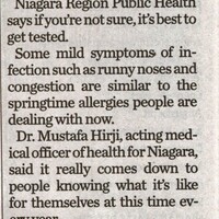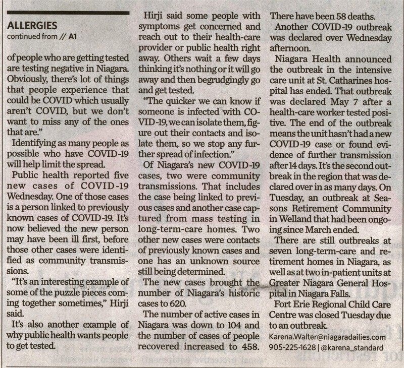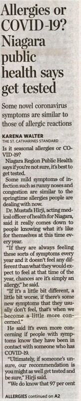 - Allergies or COVID-19? Niagara public health says get tested : Some novel coronavirus symptoms are similar to those of allergic reactions