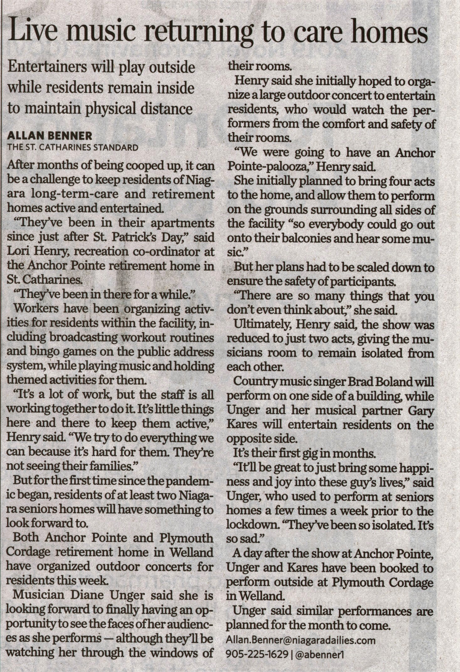 - Long-term-care facilities / live music / physical distancing / COVID-19 pandemic
