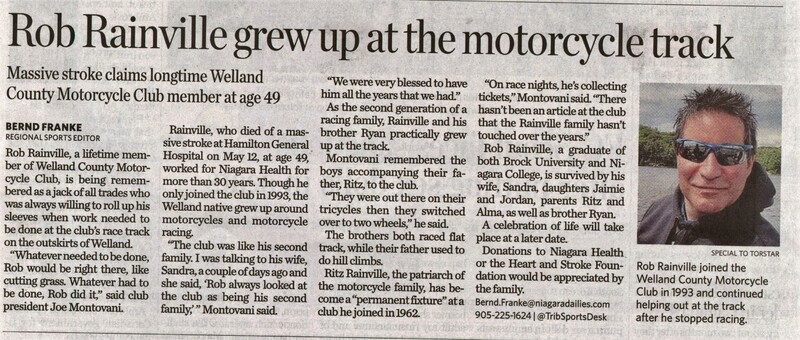 Rob Rainville grew up at the motorcycle track : Massive stroke claims longtime Welland County Motorcycle Club member at age 49