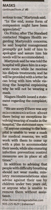 - Martynuk, John / Niagara Health System / COVID-19 pandemic / masks