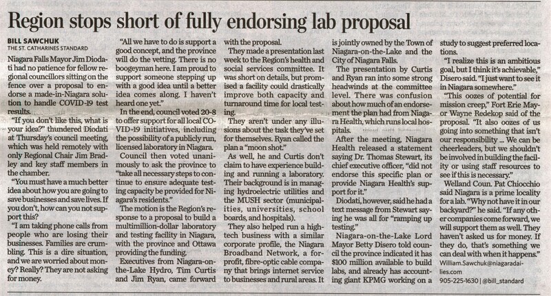 - Diodati, Jim (Mayor) / COVID-19 testing lab / Curtis, Tim / Ryan, Jim / Niagara Region