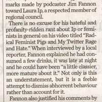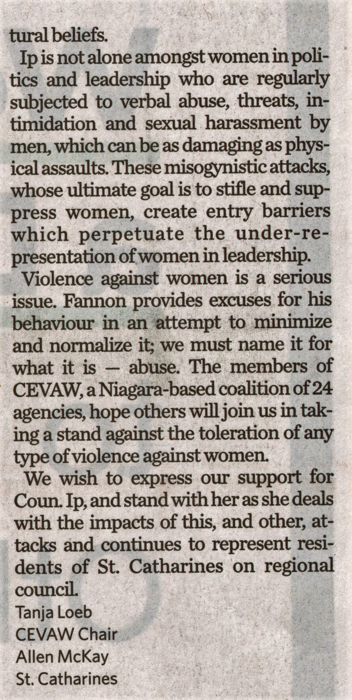 Misogynistic attacks should not be tolerated : Re: Niagara Region councillor taken aback by 'hurtful' online attack', April 30