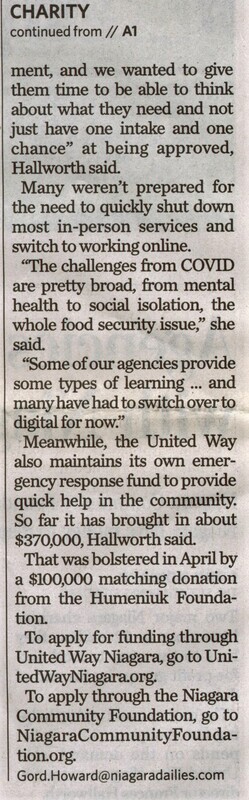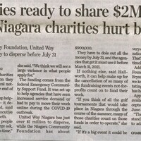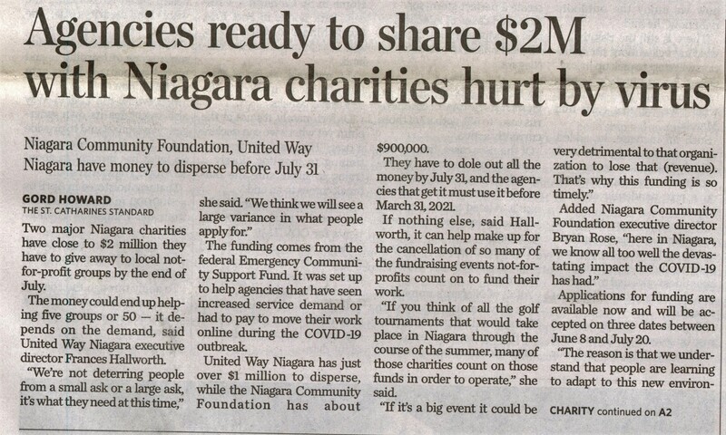 - Agencies ready to share $2M with Niagara charities hurt by virus : Niagara Community Foundation, United Way Niagara have money to disperse before July 31