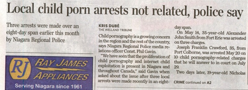 - Local child porn arrests not related, police say : Three arrests were made over an eight-day span earlier this month by Niagara Regional Police