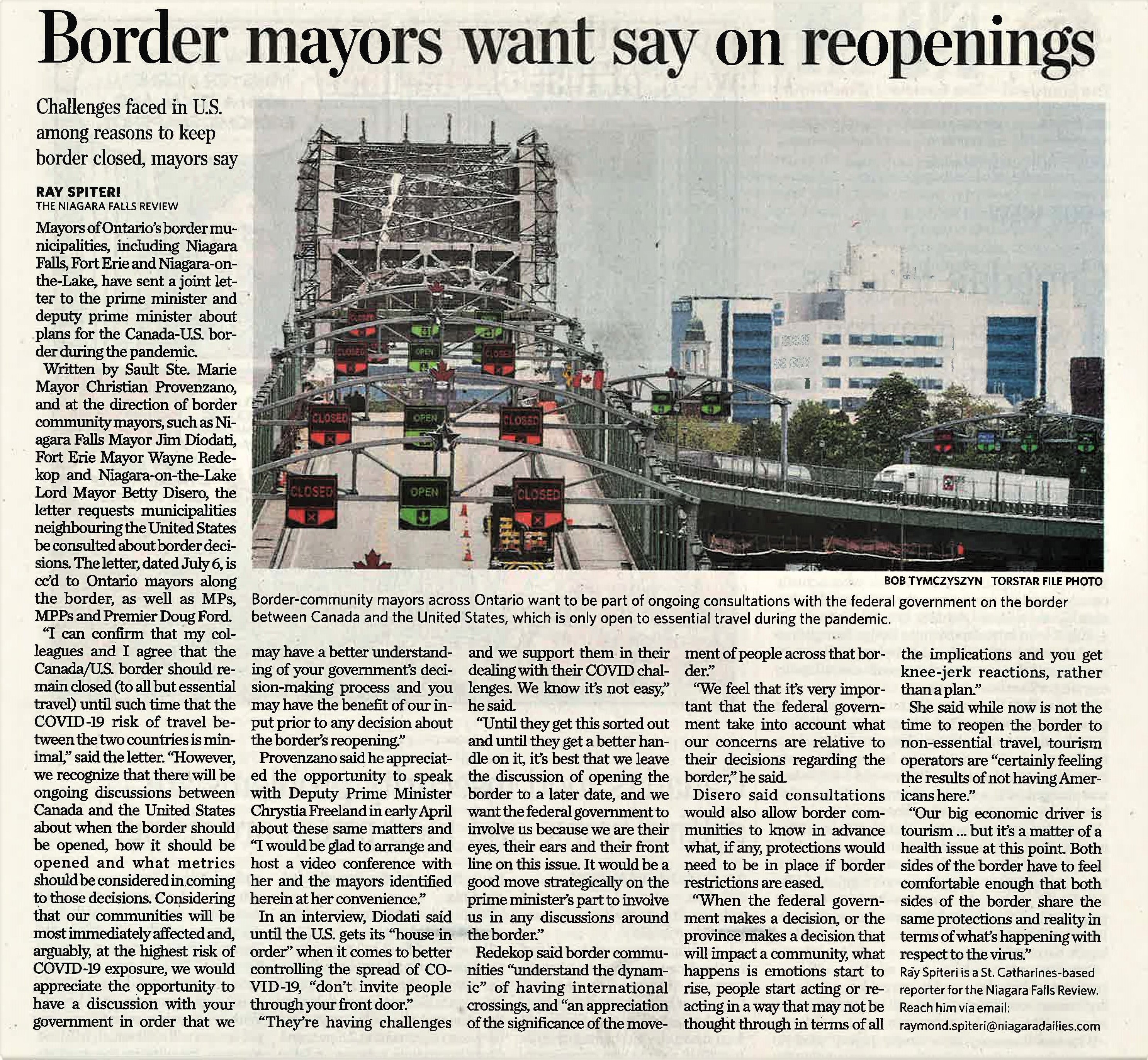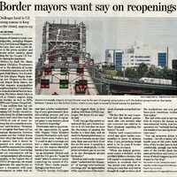 - Border mayors want say on reopenings : challenges faced in U.S. among reasons to keep border closed, mayors say