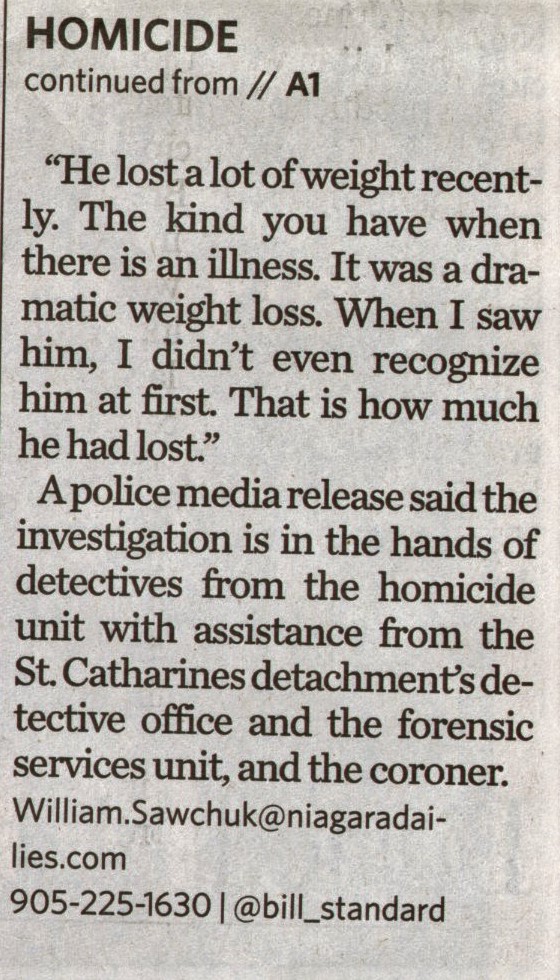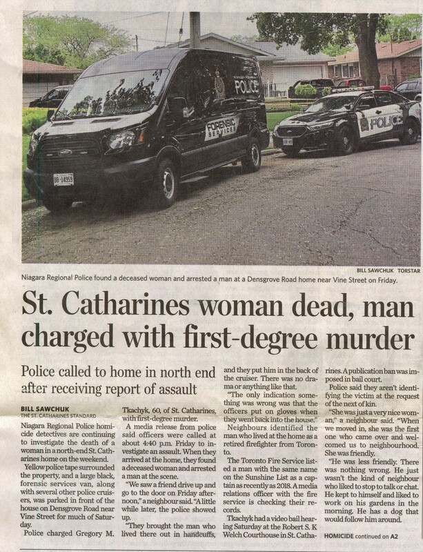 - Niagara Regional Police / homicide / arrest / Tkachyk, Gregory M.