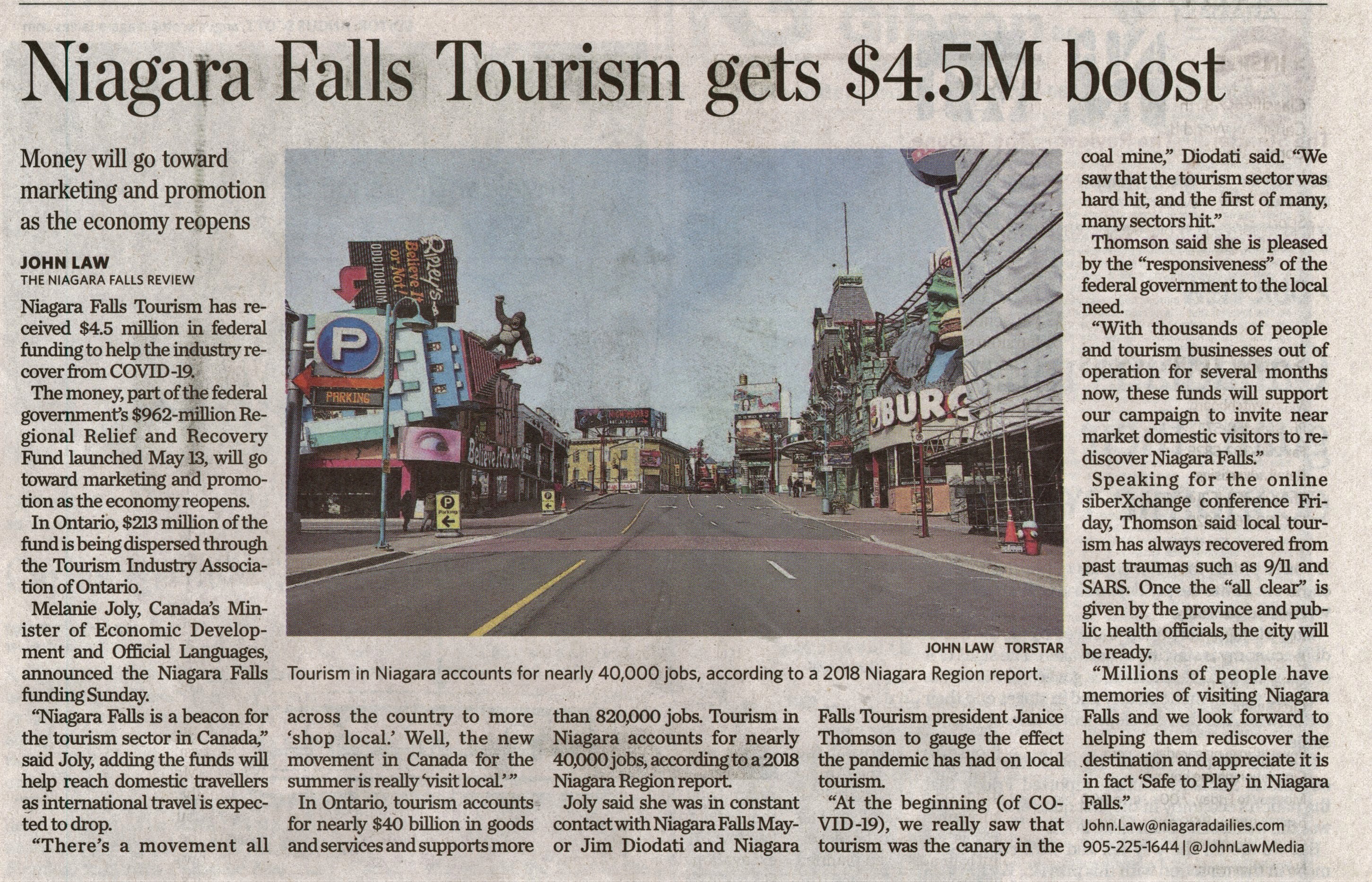 - Niagara Falls Tourism gets $4.5M boost : Money will go toward marketing and promotion as the economy reopens