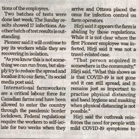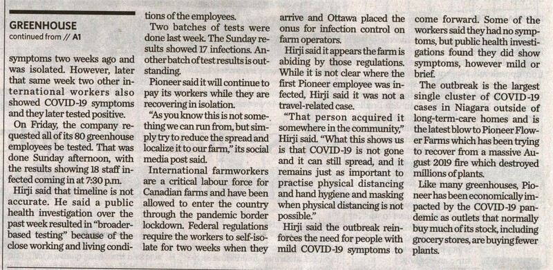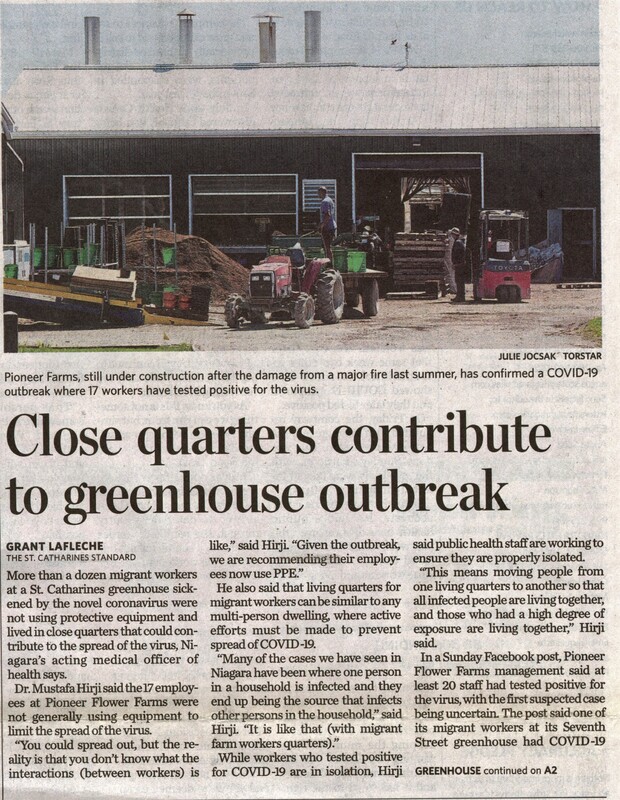 - Hirji, Mustafa Dr. / COVID-19 outbreak / Pioneer Flower Farms / migrant farm workers