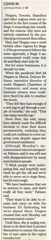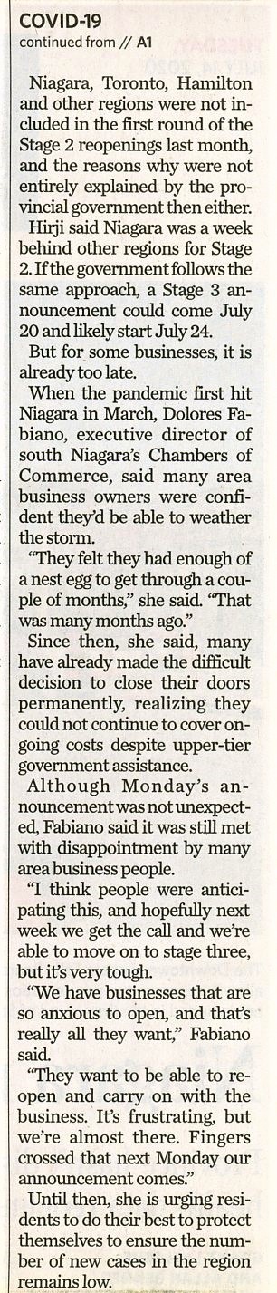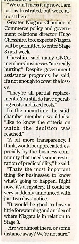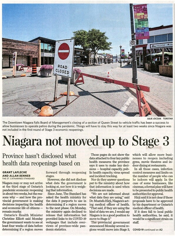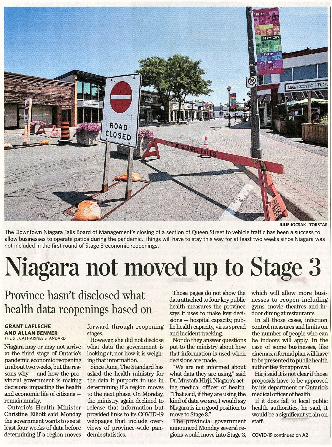 - Niagara not moved up to Stage 3 : province hasn't disclosed what health data reopenings based on