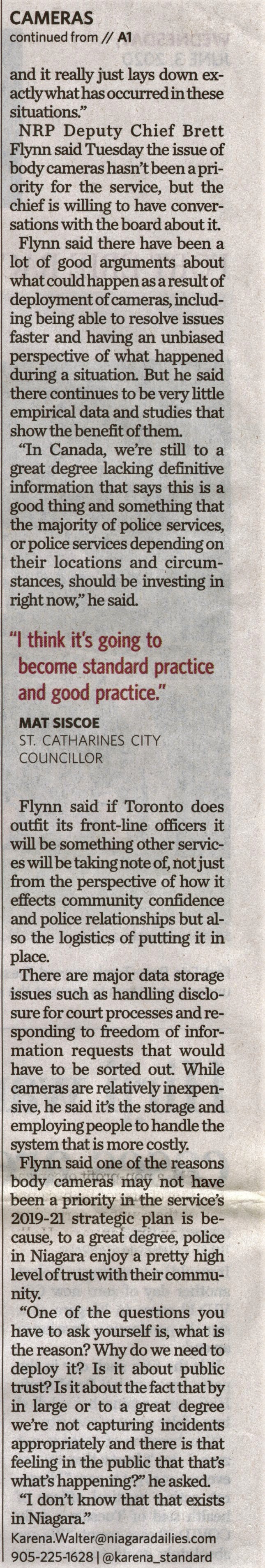 - Siscoe, Matt / Flynn, Brett / body cameras / Niagara Regional Police / Korchinski-Paquet, Regis