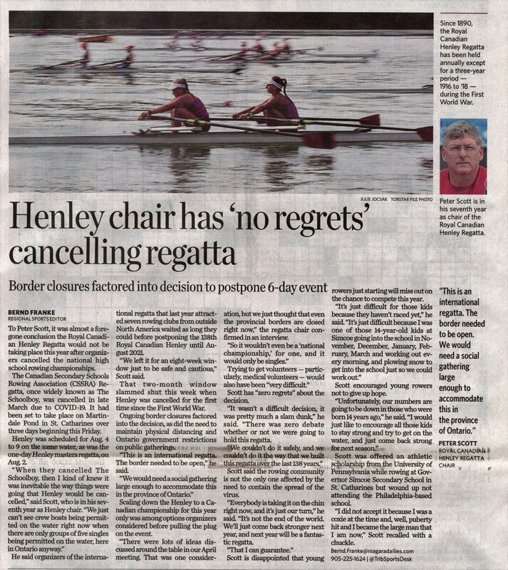 - Royal Canadian Henley Regatta / COVID-19 pandemic / Scott, Peter / cancelled