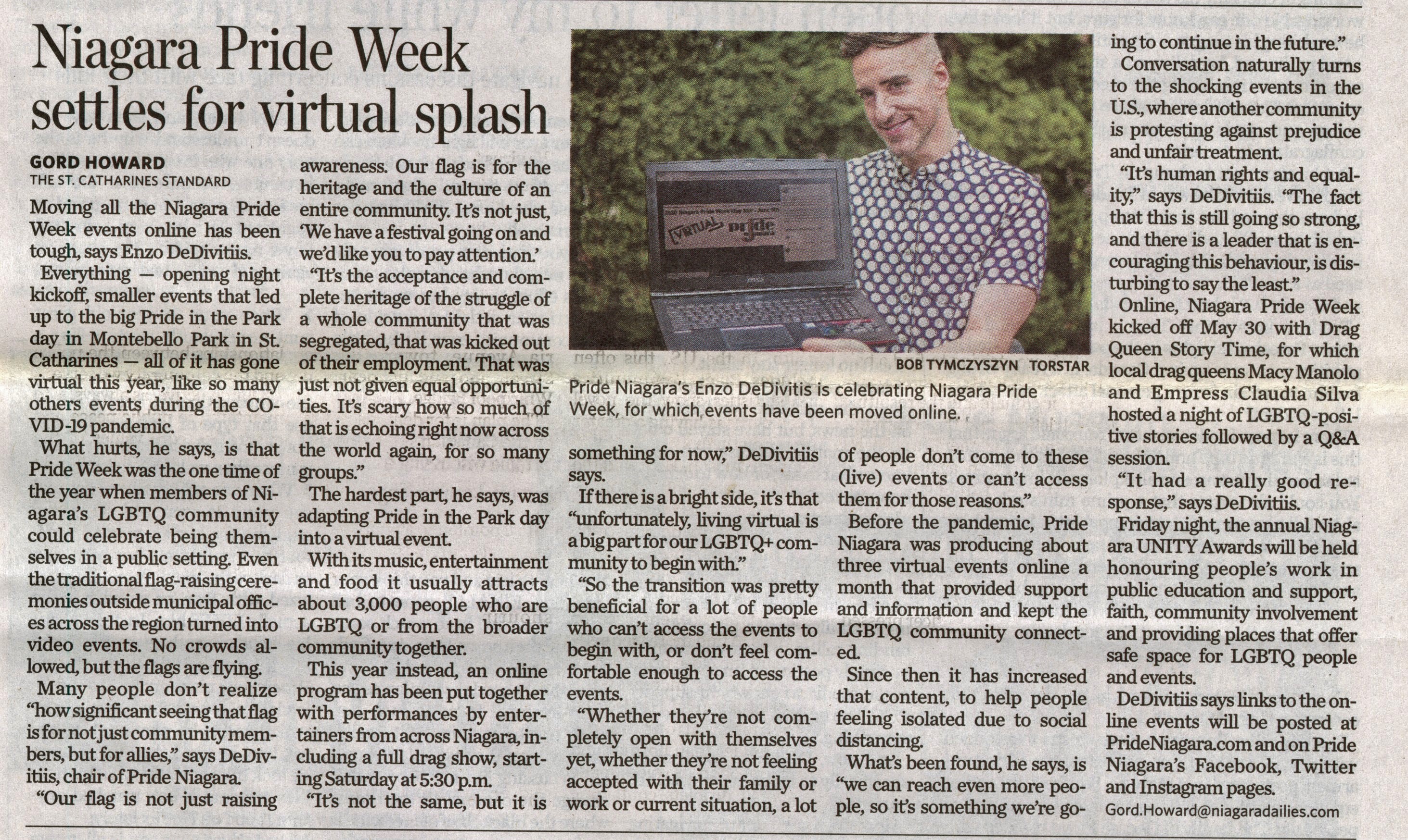 - DeDivitis, Enzo / Pride Week Niagara / COVID-19 pandemic / online celebration