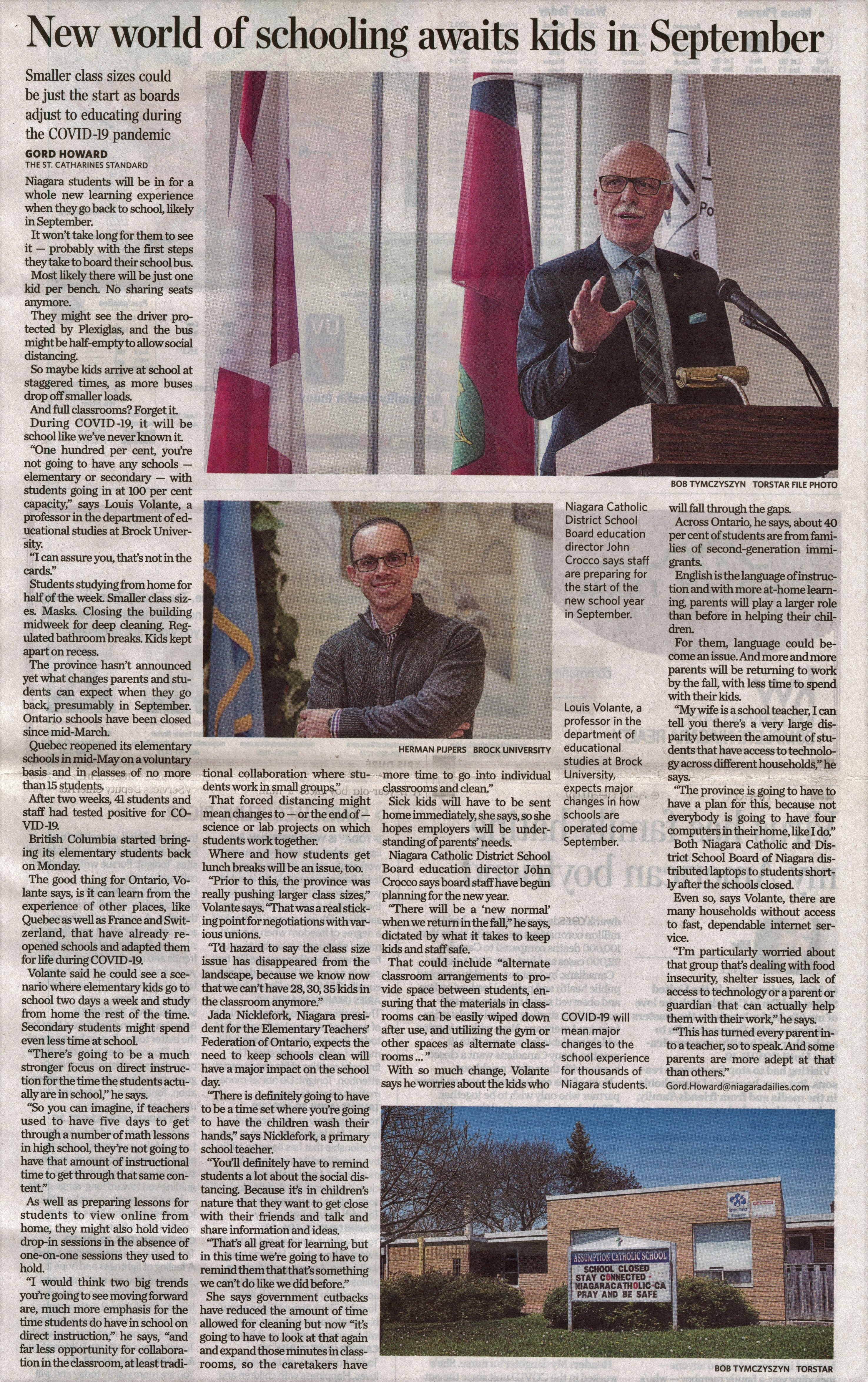 - Niagara Catholic District School Board / Crocco, John / COVID-19 pandemic / Volante, Louis / Niagara Students